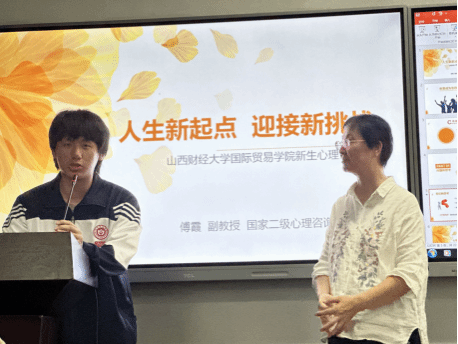 邀请了国家二级心理咨询师傅霞副教授,开展了以“人生新起点,迎接新挑战”为主题的心理健康讲座,2024级辅导员王锦及130余名新生参与。