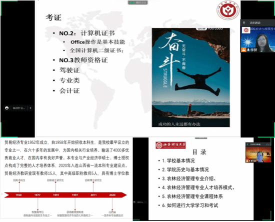 第一阶段是师生见面会。国际经济与贸易教研室李丽老师、贸易经济教研室韩帅老师、国际商务教研室刘青云老师和农林经济管理教研室曹先磊老师分别主持了会议,各位老师首先对2022级学生开始崭新的大学生活表达了祝贺,对同学们相聚k漫画