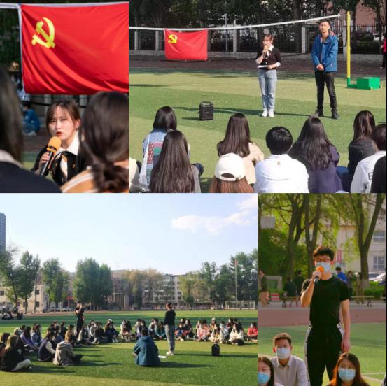 4月19日,“疫”线辅导员临时党支部书记在迎泽校区操场为法学院、公共管理学院、k漫画