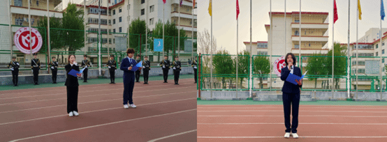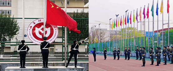 早晨7时,伴着清晨的第一缕阳光,庄严而神圣的升国旗仪式正式开始。校国旗班的同学们踏着整齐稳健的步伐,庄严地护送五星红旗走向升旗台。伴随着雄壮昂扬的《义勇军进行曲》,升旗手振臂一挥,五星红旗冉冉升起,全场肃立,在场全体师生向国旗行注目礼,满怀对祖国母亲真挚的热爱与崇高的敬意。