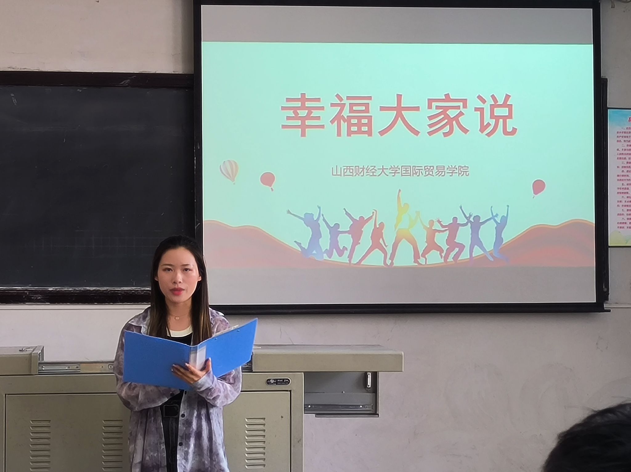 于修德306教室成功举办了《幸福大家说》第二期。本期有幸邀请到上海财经大学商学院教授、博士生导师、国际贸易和电子商务领域资深学者兰宜生老师作为主讲嘉宾。学院党委副书记殷丽娟以及30名学生参与讲座,学生代表朱烨主持。