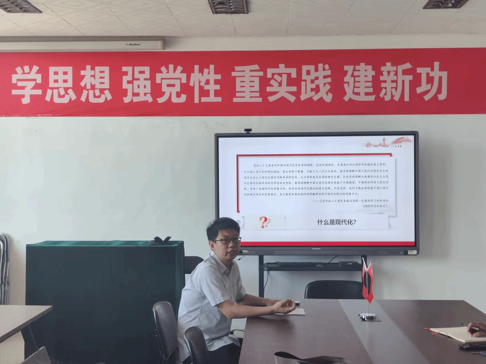 党委邀请学校主题教育宣讲团成员、马克思主义学院徐朝卫老师做了题为“大力推进中国式现代化”的专题宣讲。报告会由学院党委书记陈晓虎主持,师生代表50余人参加。